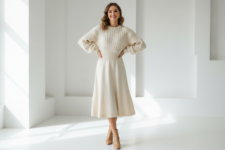 Ribbed Knit Bodycon Sweater Dress – Long Sleeve Fall Winter Dress